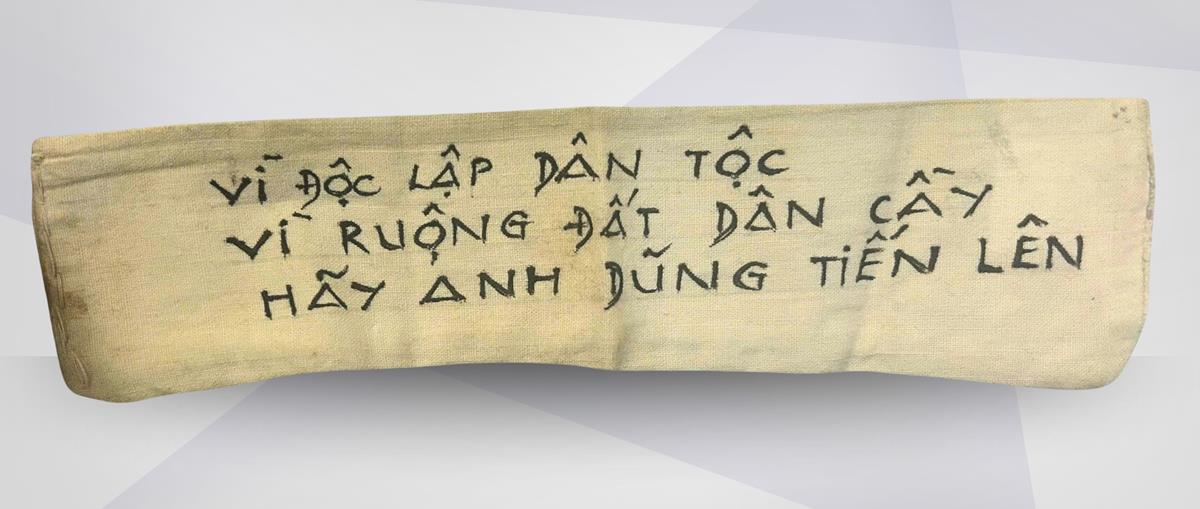 Chiếc Băng rôn bằng vải màu trắng, có hình chữ nhật với chiều dài 21,5cm, chiều rộng 5cm, ba câu khẩu hiệu “Vì độc lập dân tộc, vì ruộng đất dân cầy, hãy anh dũng tiến lên” được viết bằng mực đen. Mỗi câu khẩu hiệu trên chiếc Băng rôn như lời hiệu triệu tới toàn Đảng, toàn dân, toàn quân tạo nên sự thống nhất về tư tưởng, hành động, tạo nên sức mạnh tổng hợp, quyết tâm giành chiến thắng trong Chiến dịch Điện Biên Phủ.