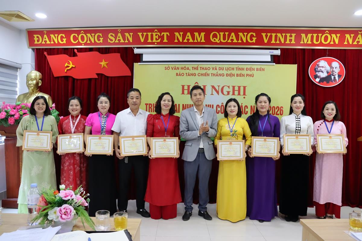 Với những thành tích đã đạt được trong năm 2025, đơn vị Bảo tàng Chiến thắng Điện Biên Phủ, tập thể Phòng Nghiệp vụ và 12 cá nhân có thành tích xuất sắc trong năm 2025 đã vinh dự được trao tặng giấy khen của Giám đốc Sở Văn hóa, Thể thao và Du lịch tỉnh Điện Biên; 09 cá nhân đạt danh hiệu Chiến sĩ thi đua cấp cơ sở.